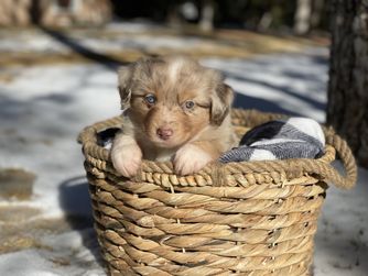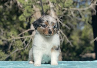 Our German Shepherd puppies include sable and black. Miniature American Shepherd puppies include black, red merle, blue merle, and red. Colors will vary depending on the parent dogs.