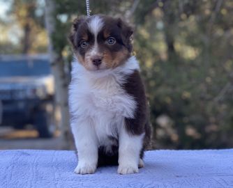 Josie is a female Miniature American Shepherd. Carefully selected as a great representative of her breed, Leah decided to make her part of their program. Leah has passed Good Dog’s screening process, which involved a review of their breeding practices, environment, and the mental and physical health of their dogs.