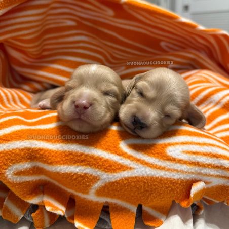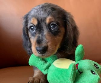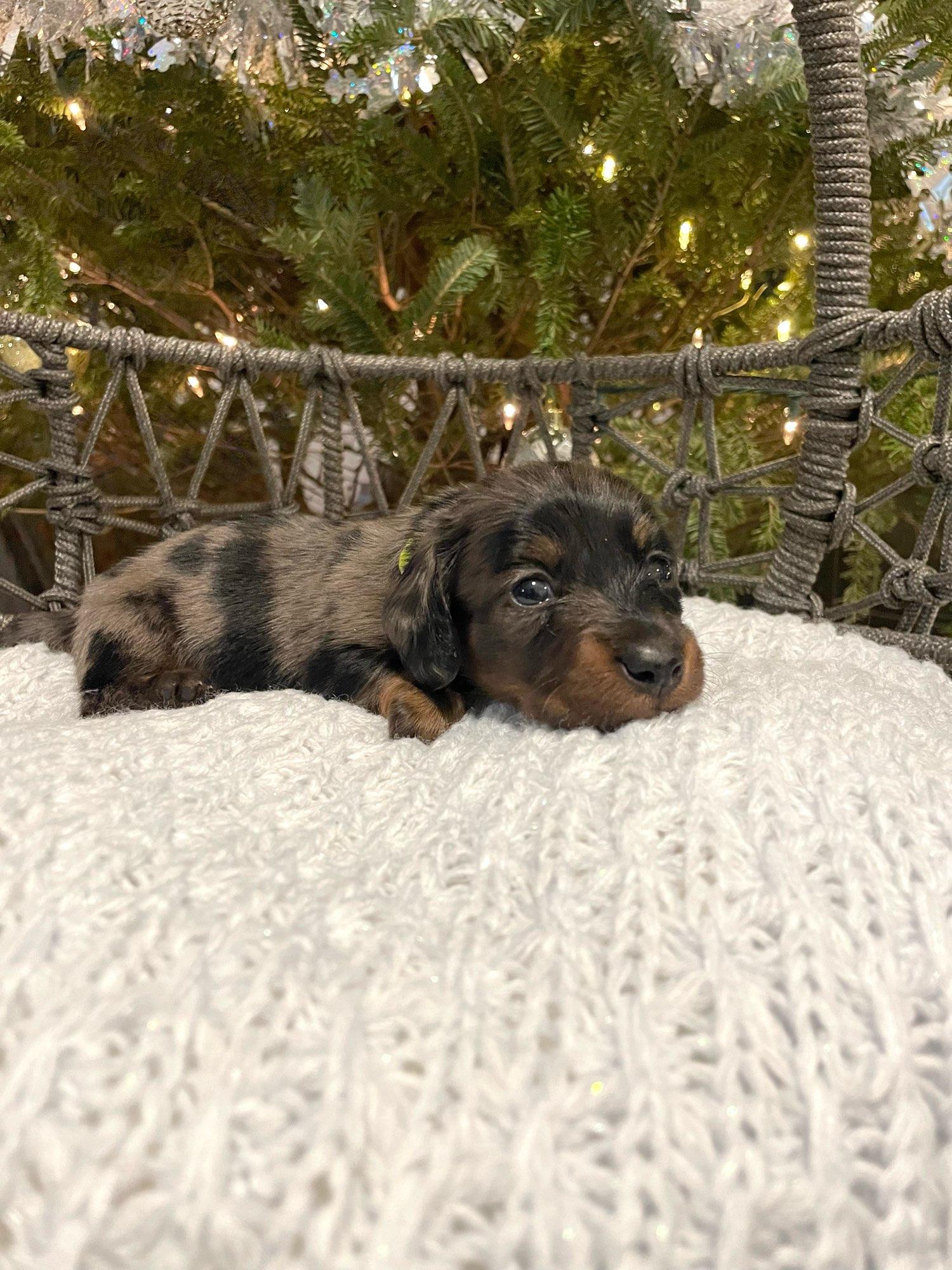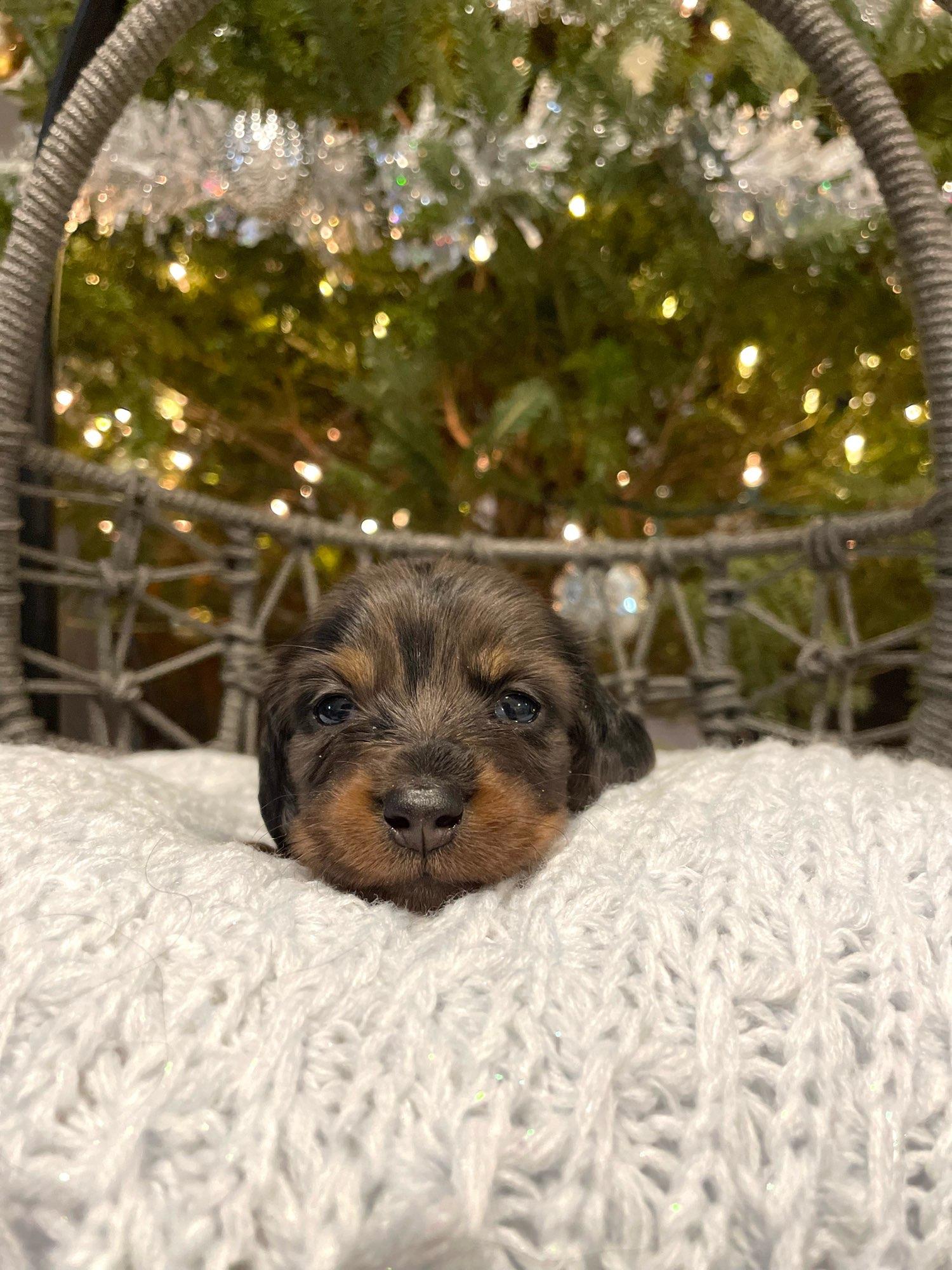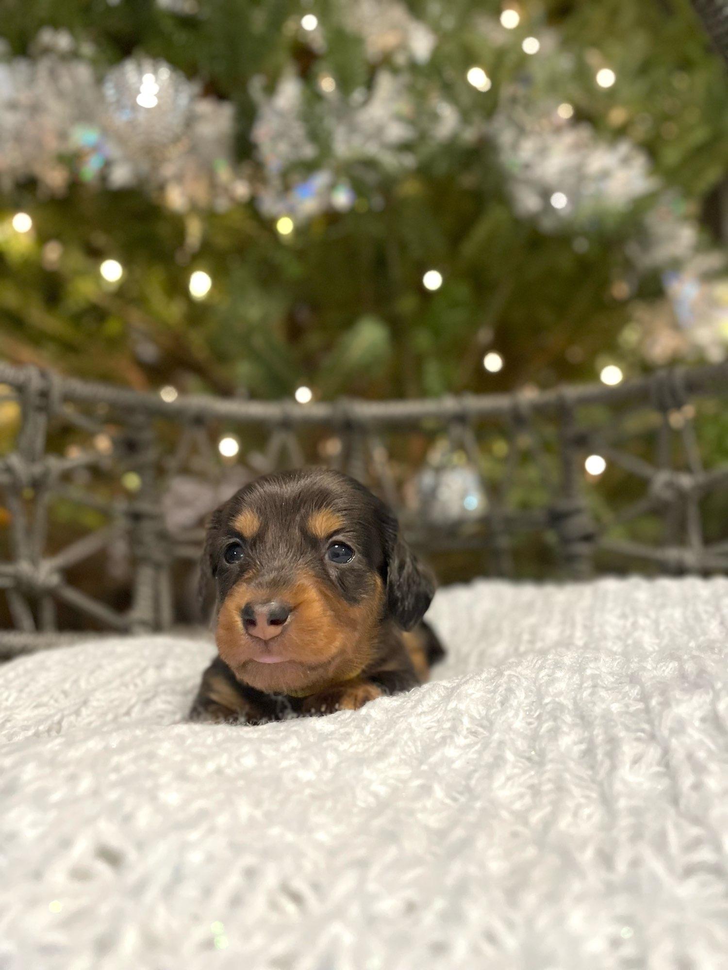 We had such a great experience with Vonaducci Doxies! From the very beginning, she shared weekly photos and milestone updates of our newest edition to the family, Reece, which made the wait so exciting and special. You can truly tell how much love and care she puts into her dogs. Reece came to us happy, healthy, and already showing how smart she is! She’s fetching toys, learning potty training quickly, and has the sweetest personality. We drove 6 hours from New Mexico to Phoenix to bring her home, and we would do it all over again without hesitation. So grateful for the love and dedication that went into raising Reece before she came to us.