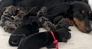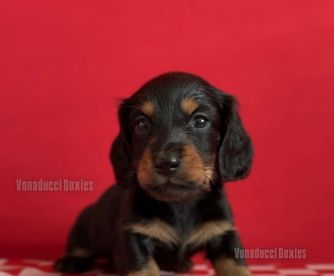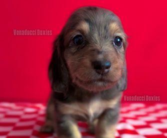 Since the first moment that I started corresponding with Vonaducci Doxies I knew that I was with not only an excellent breeder but with a sweet, kind and lovely person!!! I fell in love with Rivi and when it was confirmed that she was ours Vonaducci would keep me on the loop with weekly photos and videos, that was awesome!! Having use Good Dog to find her gave me confidence that I was dealing with a legit and responsible breeder everything went smoothly!! I’m sooo in love with my baby, she’s perfect, so sweet, a little mischievous cuz she’s a doxie, but so well balanced I’m amaze by her and that only shows what a great job her breeder did. If I wasn’t at capacity I would already be on a wait list for another one!!!