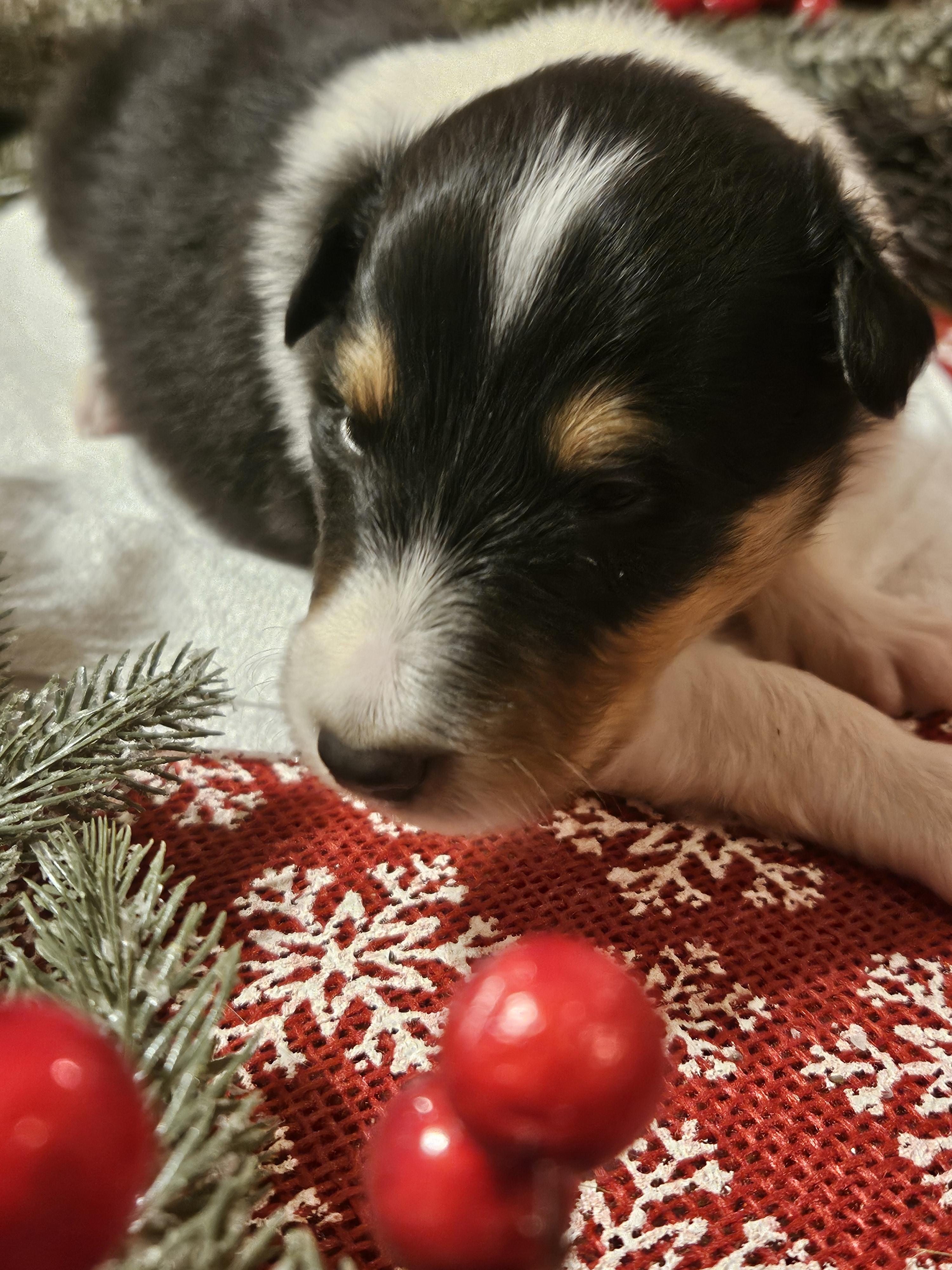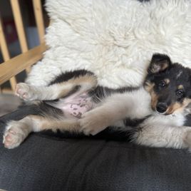 We are so delighted with our newest family member from Voneida Collies! Amber helped me choose a boy with the perfect disposition for our family. We picked out Bjorn aka "Little Bear" - a sweet tri-color boy with a mellow, loving personality. Amber was also extremely helpful in figuring out all of the logistics to ship him all the way to Alaska(!) The puppy arrived happy and comfortable- even after a long plane ride. Amber was a great communicator and was very transparent about all expected travel adjustments/costs. She was also responsive to my requests for photos and videos of our new puppy. I would absolutely recommend Amber and Voneida Collies to anyone considering a new pup. We are so happy with our choice!