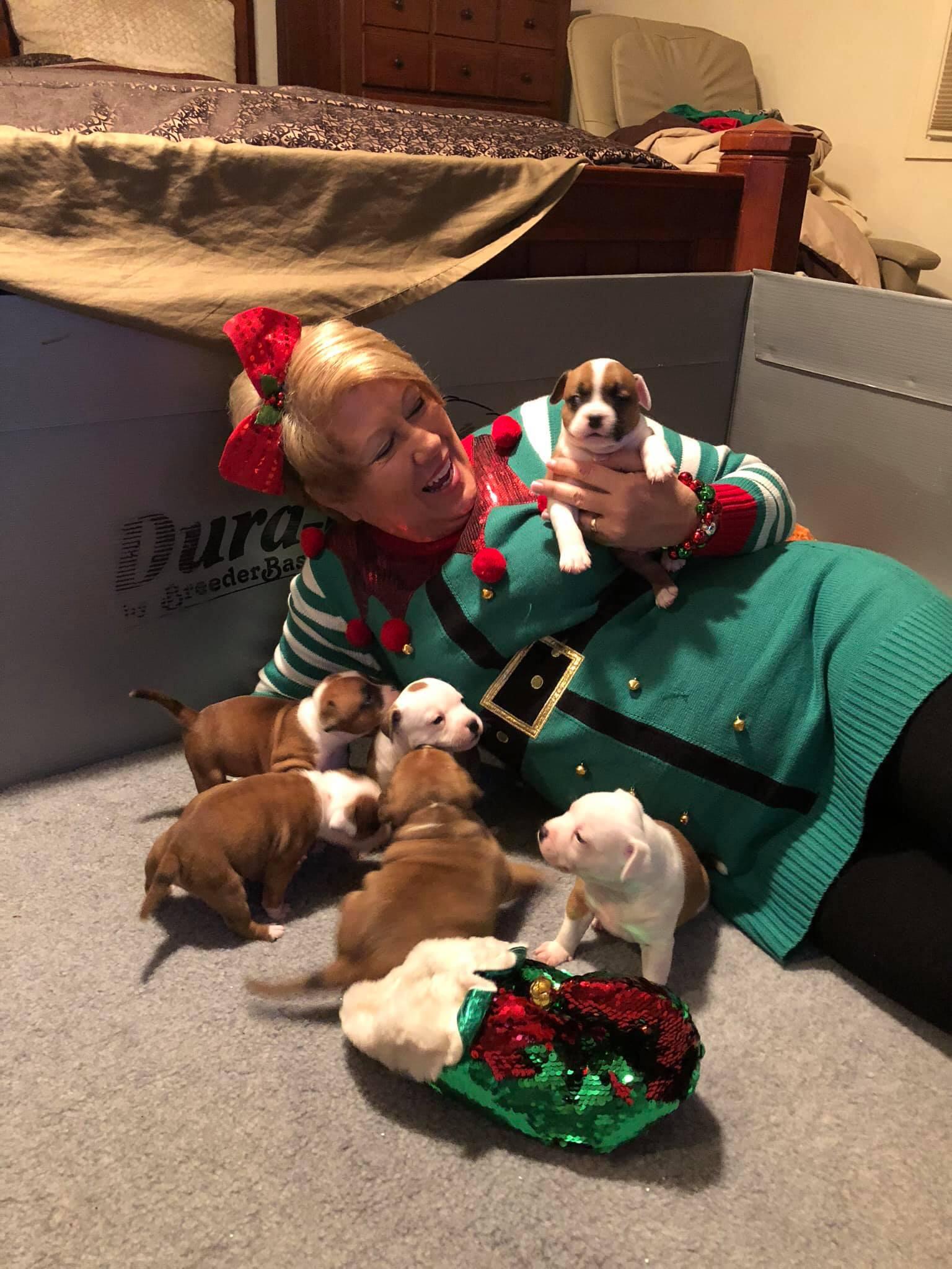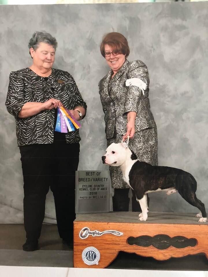 I'm Angela V., the breeder behind Von’s Staffordshire Bull Terriers located in Danville, IA. Since 2001, we have had several dogs in the top 10 in the United States, and we are very proud of each and every one of them. Today our focus is on educating people about the breed and producing dogs that are healthy, of quality stock, and with the best personalities possible. Each of our dogs lives in our home and are members of the family. This is a breed that needs to be with their family and not stuck outside in the yard or a pen. They are a constant companion and will be at your side at all times. If you are looking for a loyal companion, this is the breed for you.