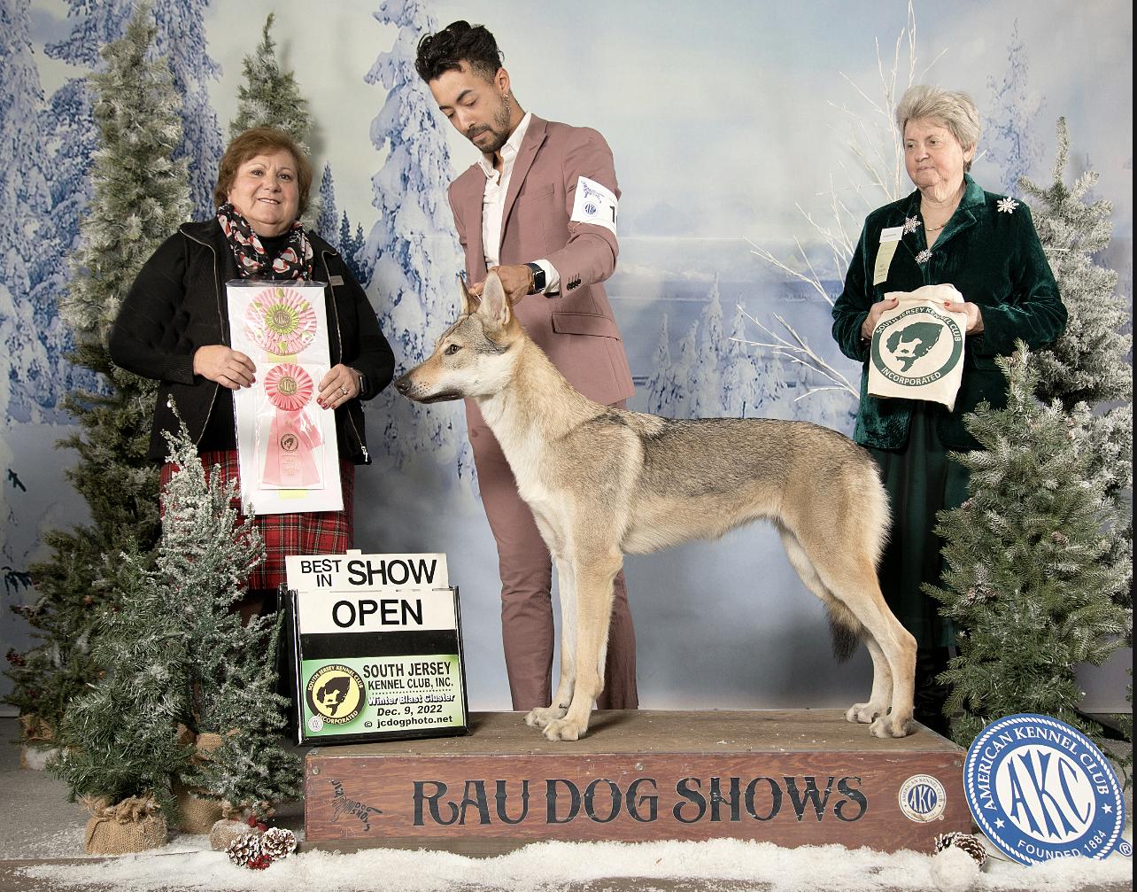 Image is a female Czechoslovakian Vlcak. Carefully selected as a great representative of her breed, Aric decided to make her part of their program. Aric has passed Good Dog’s screening process, which involved a review of their breeding practices, environment, and the mental and physical health of their dogs.