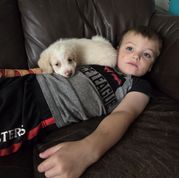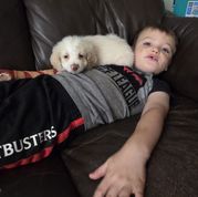 Alfredo is a small first generation aussiedoodle. He loves to play fetch and be with his people. He is a family dog for sure!