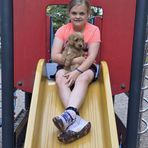 Cocoa is a medium goldendoodle at 40 pounds. She loves to cuddle and sleeps in our daughter's bed. She is low/medium energy level and very well trained. She is Embark tested and clear.