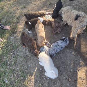 Our Goldendoodle puppies include miniature and medium sizes. Aussiedoodle puppies are mini size. Sizes will vary depending on the parent dogs.