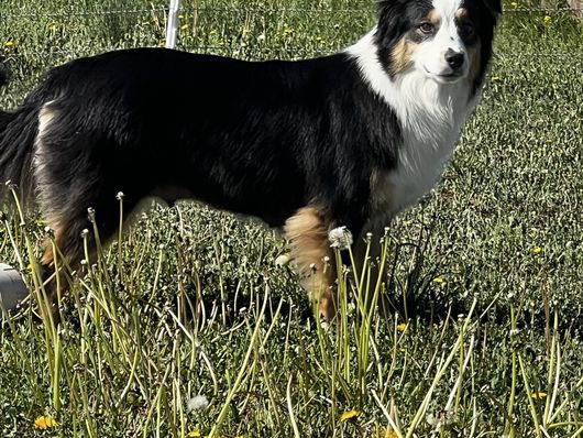 After about two years of thinking about getting another Aussie, (I had one years ago) I decided to get another one. Then, I thought of the idea of breeding. I wanted to share my love for the Australian Shepherd with other families. I looked for good quality dogs with a good pedigree and genetics.