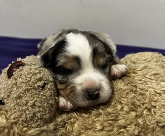Our puppies are red merle. Colors will vary depending on the parent dogs.
