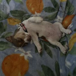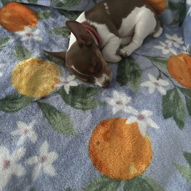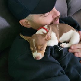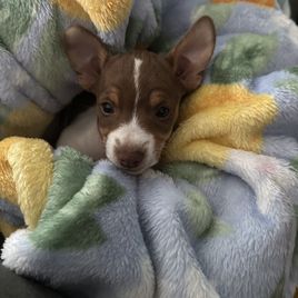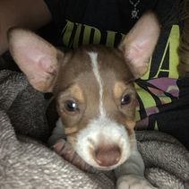 Rockett is a content little girl who loves cozy corners and will make herself a nest in anything that is available; her favorite spot to be is under the covers. However, no matter the weather, time of day or night, or how snuggly she is, she will be the most excited dog in the world if you say "outside?" She is more of a one-on-one dog and can be a little shy.