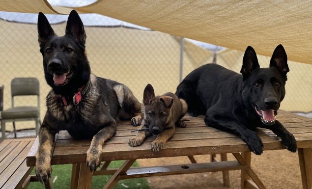 Our German Shepherd puppies include sable, black, bi-color, black and tan, and black and red. Belgian Malinois puppies include black sable, fawn sable, mahogany, and fawn. Colors will vary depending on the parent dogs.