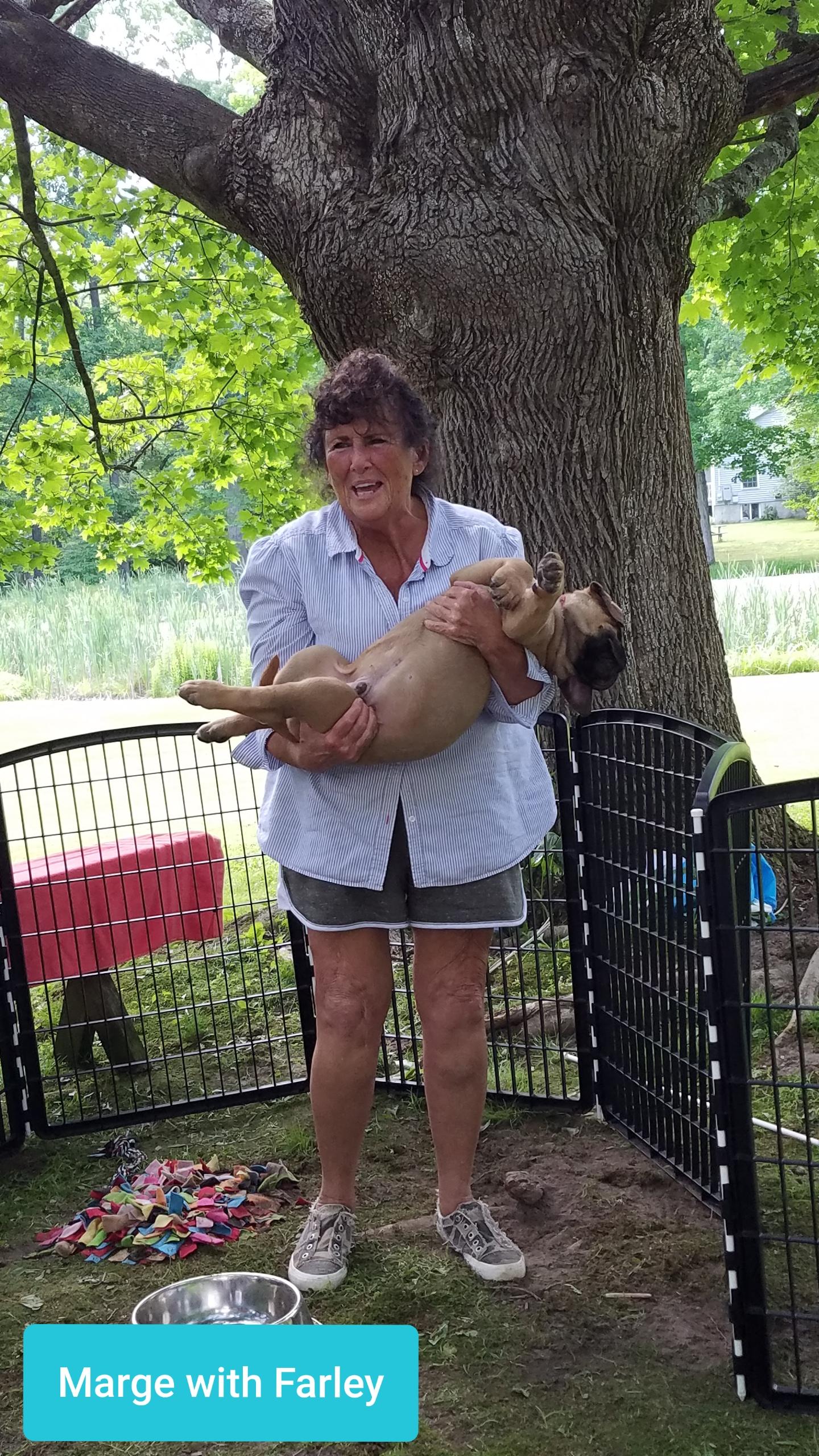Murphy is a male Bullmastiff. Carefully selected as a great representative of his breed, Margaret decided to make him part of their program. Margaret has passed Good Dog’s screening process, which involved a review of their breeding practices, environment, and the mental and physical health of their dogs.