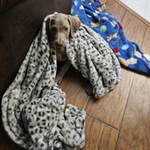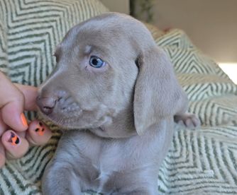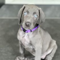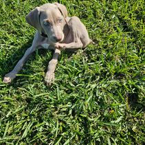 Nova is a beautiful deep blue weim. She has a high drive matched by an eagerness to please. Nova is the smallest of the females.