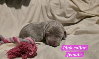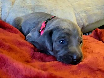 Our puppies include silver gray, gray, and blue. Colors will vary depending on the parent dogs.