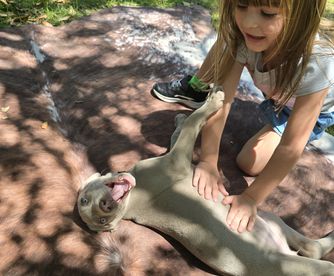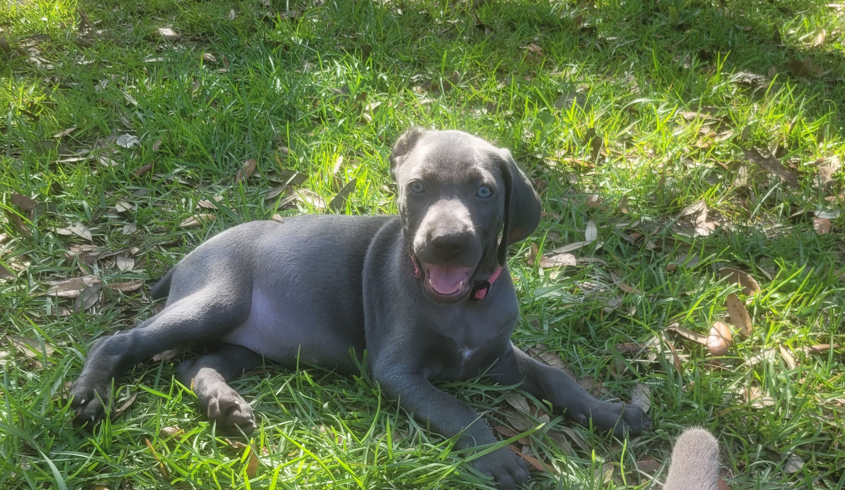 I am loving my new little boy! Jessica and her family at Waggin Weims have done a great job raising him. He is loving, loyal and ready to learn. I am so glad to add him to our family!