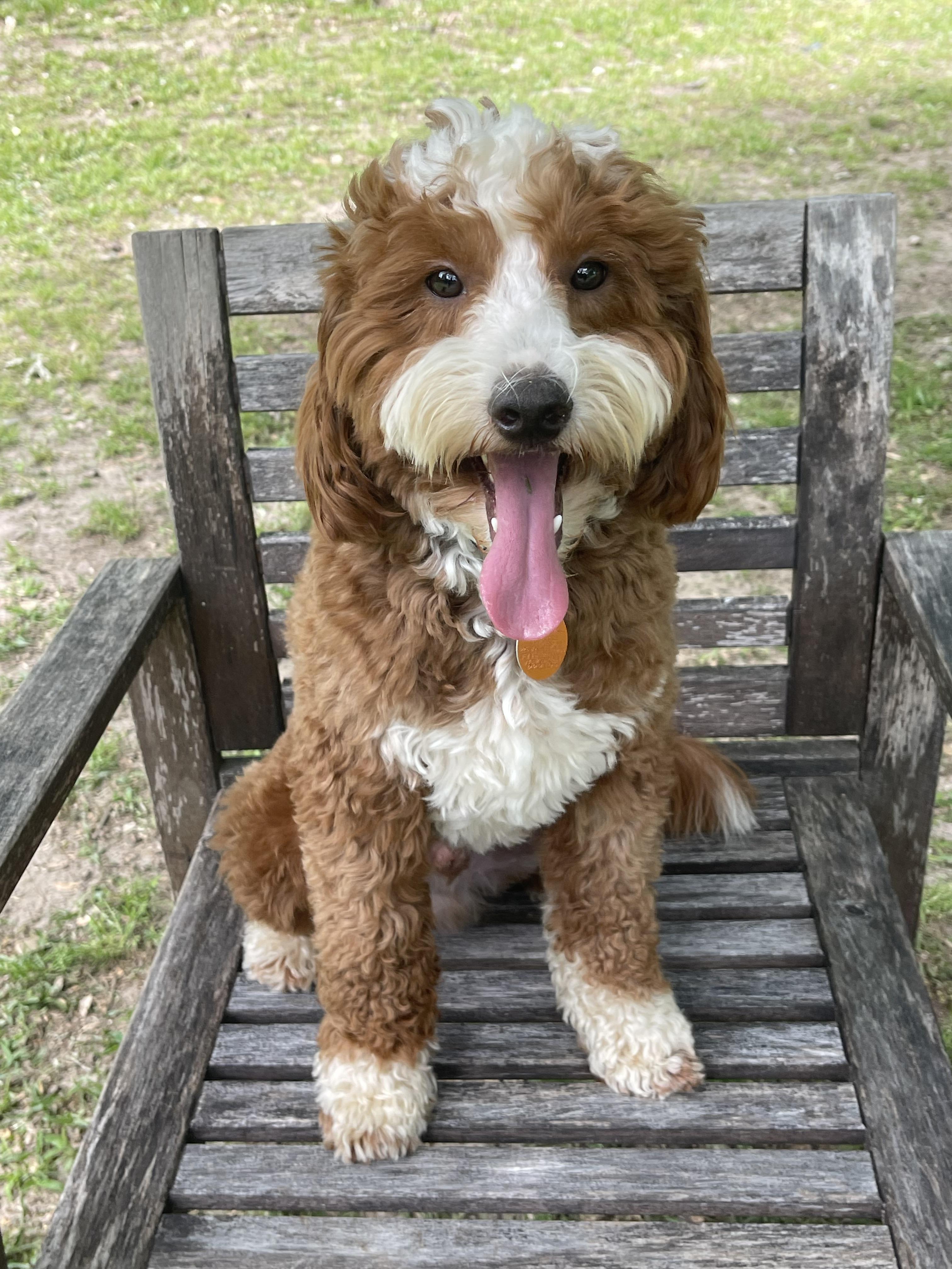 Max is a male Bernedoodle. Carefully selected as a great representative of his breed, Sherry decided to make him part of their program. Sherry has passed Good Dog’s screening process, which involved a review of their breeding practices, environment, and the mental and physical health of their dogs.