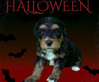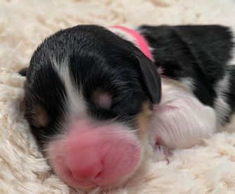 Our Bernedoodle puppies include black and white and tri-color. Colors will vary depending on the parent dogs.