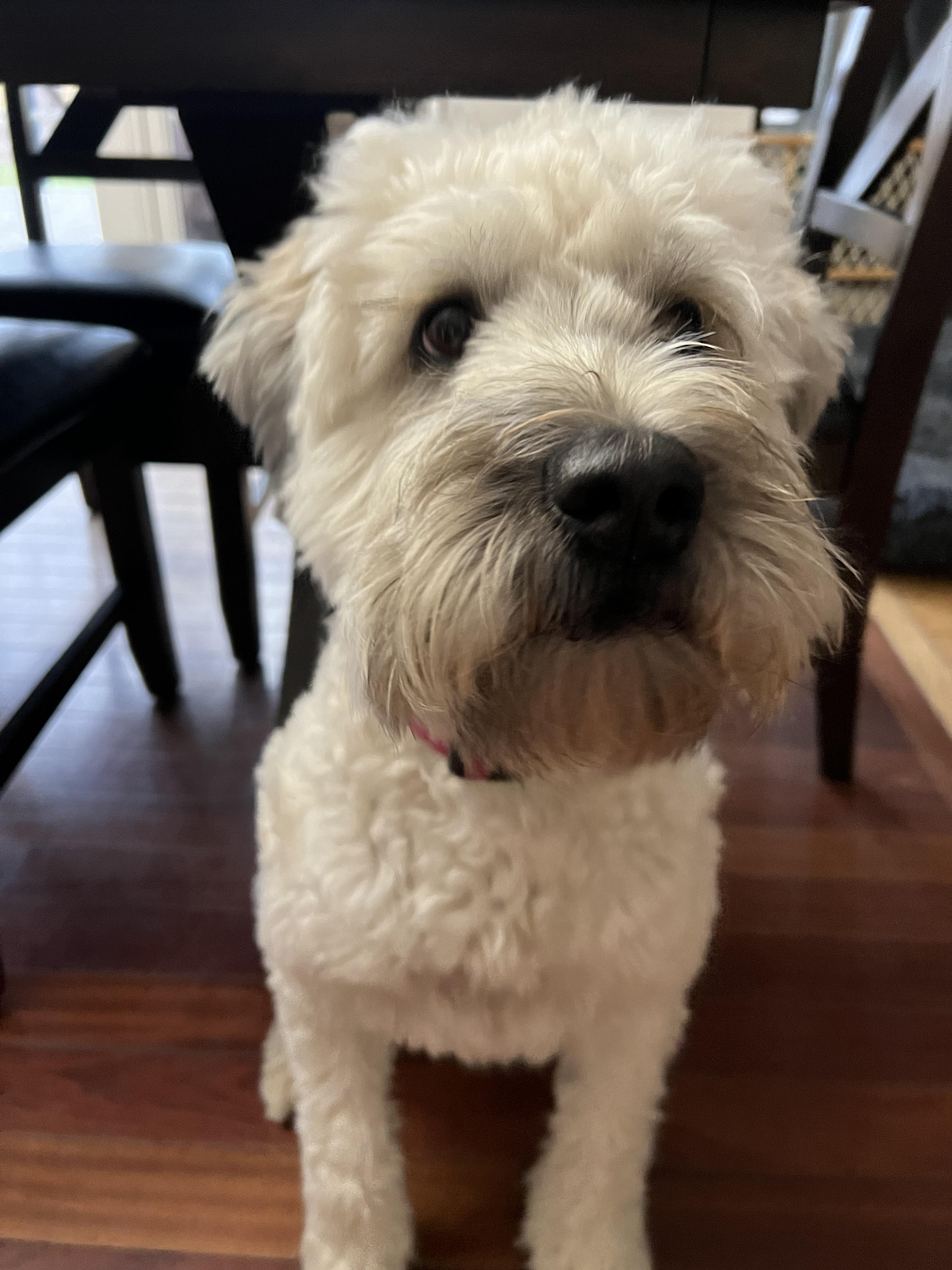 Moxie is a female Soft Coated Wheaten Terrier. Carefully selected as a great representative of her breed, Michaela decided to make her part of their program. Michaela has passed Good Dog’s screening process, which involved a review of their breeding practices, environment, and the mental and physical health of their dogs.