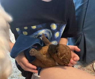I'm Michaela R., the breeder behind Wagging Wheatens located in Rochester, NY. Our dogs are breed for temperament and health. We do genetic testing on all breeding dogs checking for over 200 genetic disorders. They are well socialized in various environments. Health check by Vet. and given first Vacinations, dewormer, and microchipped before going home.