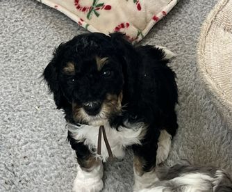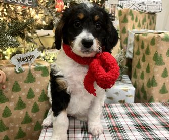 Courtney was amazing! She answered all of our questions and Face timed us so we could see our new puppy. We are so happy with Winslow our new Bernedoodle. He is extremely smart and loves to give kisses and cuddles. Courtney, thank you so much for providing such a loving environment for all the pups @ Waggle Doodles Kennels ❤️