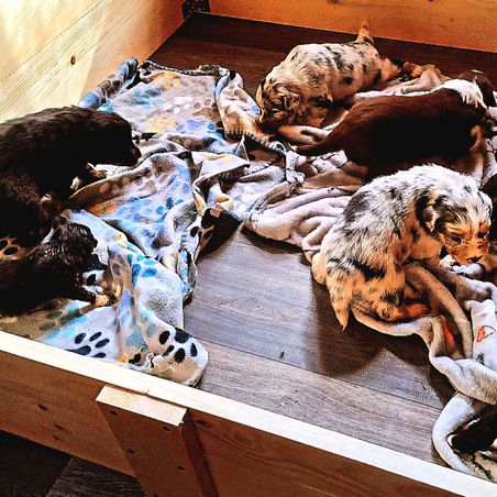 Our program focuses on preserving the Australian Shepherd’s heritage—breeding for correct structure, sound temperament, and true working ability. Raised on a farm, our dogs grow up with livestock, learning from an early age. With careful selection, proven bloodlines, and hands-on training, we produce well-balanced Aussies ready for work, show, or active homes."