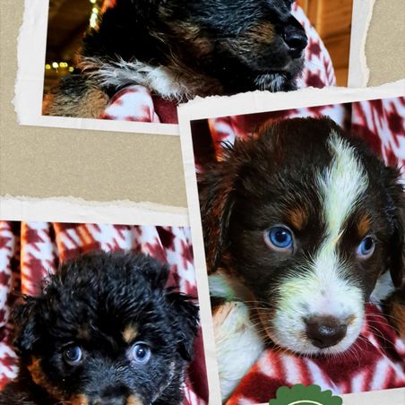 Our puppies include red & white, black & white, black, red merle, blue merle, black tri-color, and red tri-color. Colors will vary depending on the parent dogs.