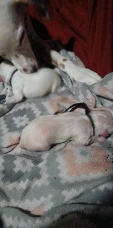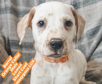Our puppies include white and orange, white and lemon, white and liver brown, and white and black. Colors will vary depending on the parent dogs.
