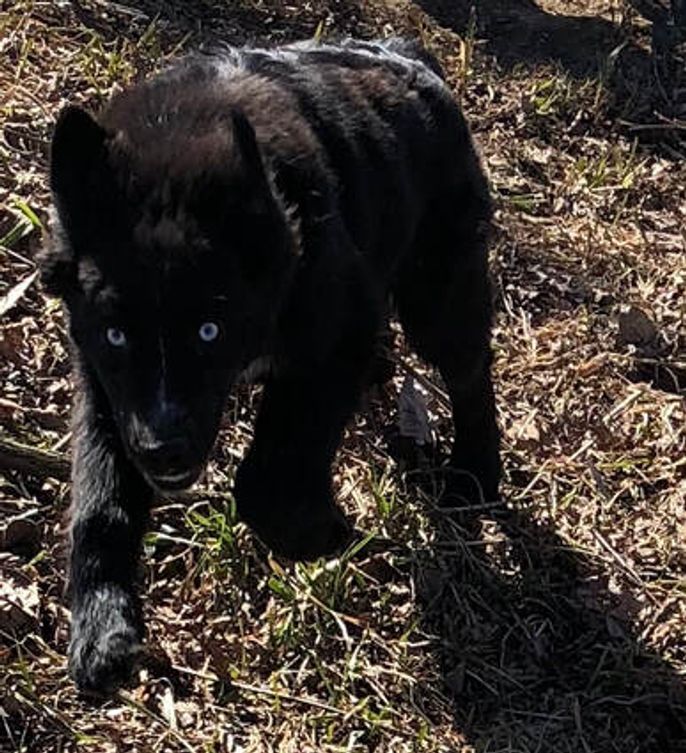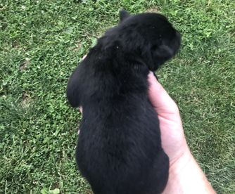 Beautiful black bi female. Small standard. Excellent pedigree. Very sweet girl. Medium drive. Has one blue eye, and one blue/brown.