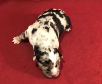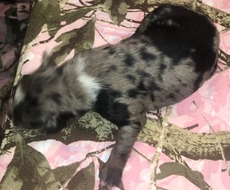Akc blue Merle with an excellent pedigree. Sweet girl. Good personality.