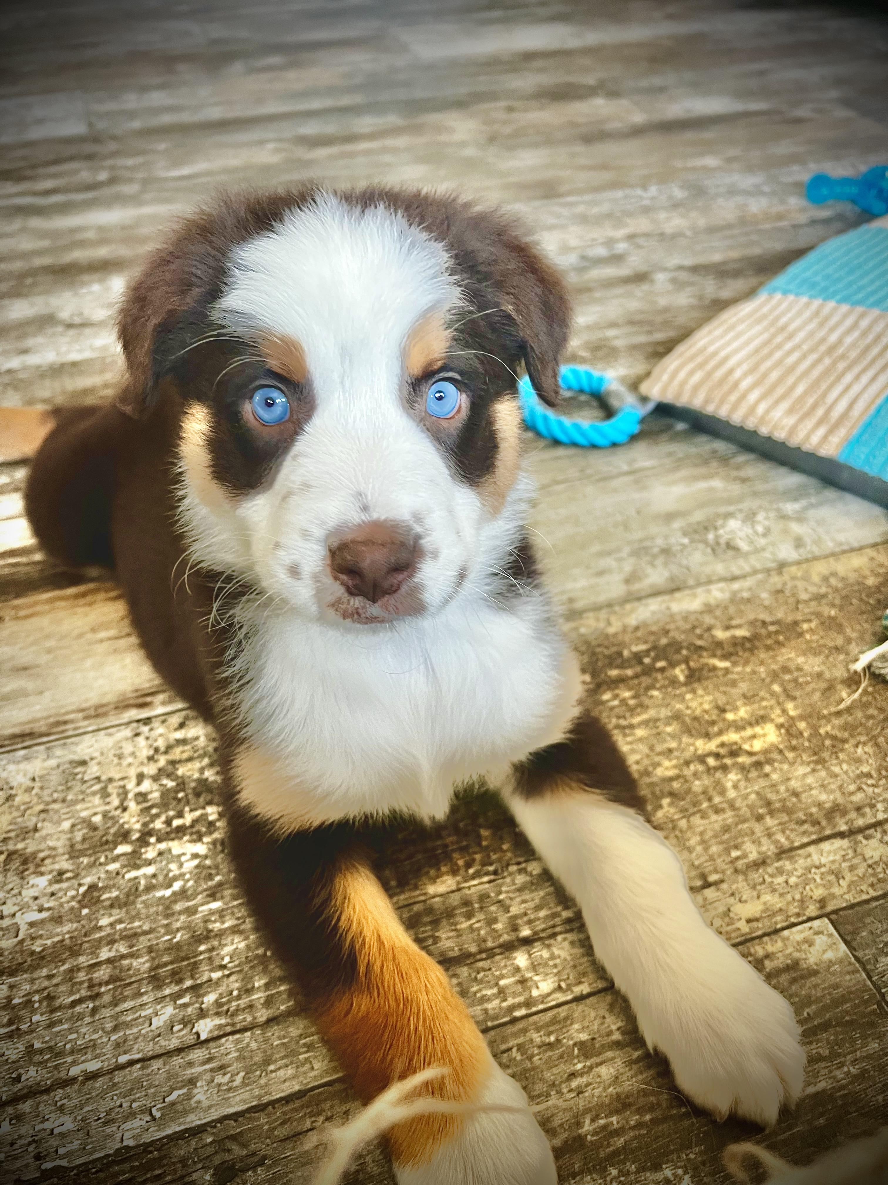Wyatt is a male Australian Shepherd. Carefully selected as a great representative of his breed, Christy decided to make him part of their program. Christy has passed Good Dog’s screening process, which involved a review of their breeding practices, environment, and the mental and physical health of their dogs.