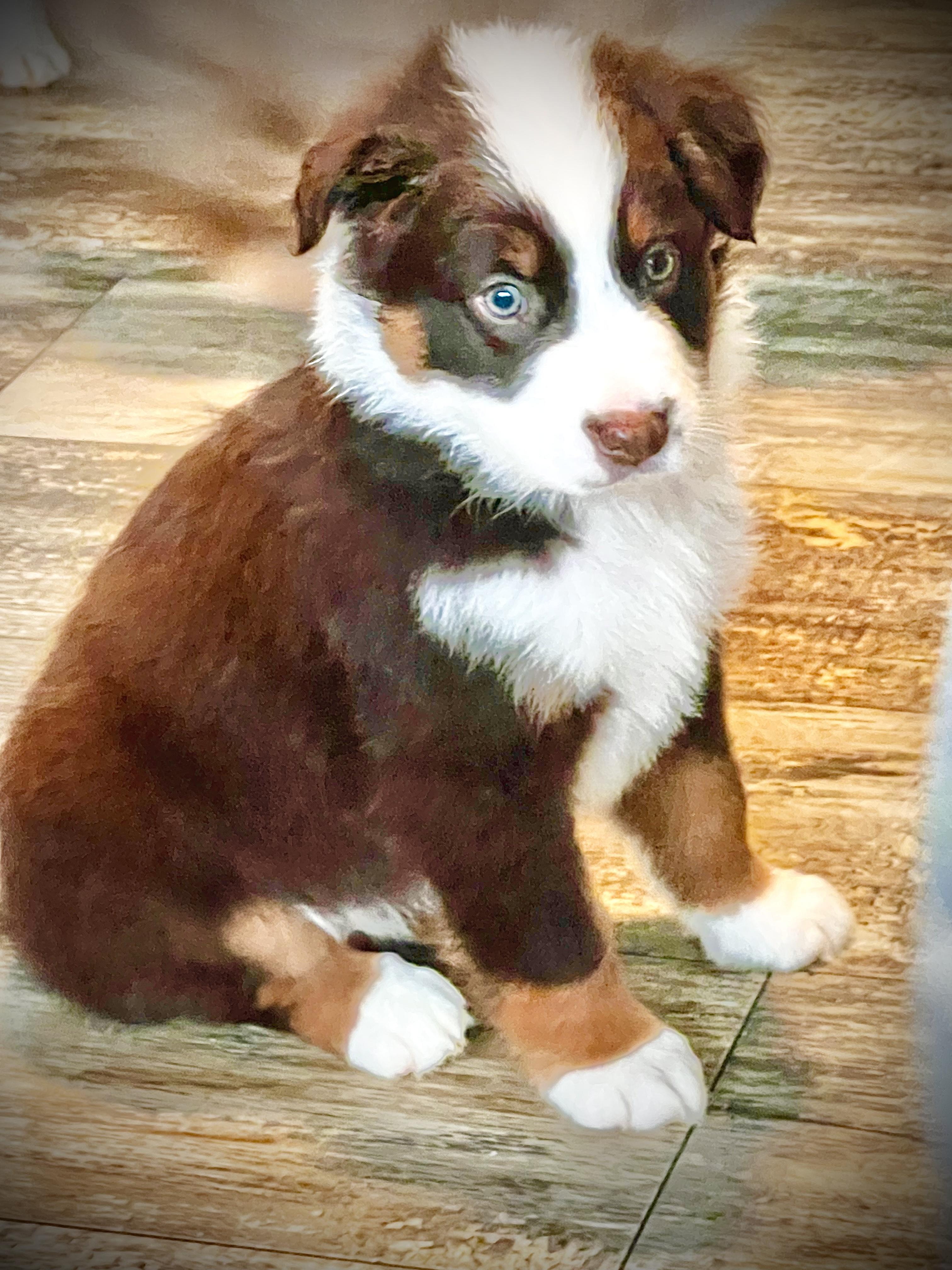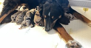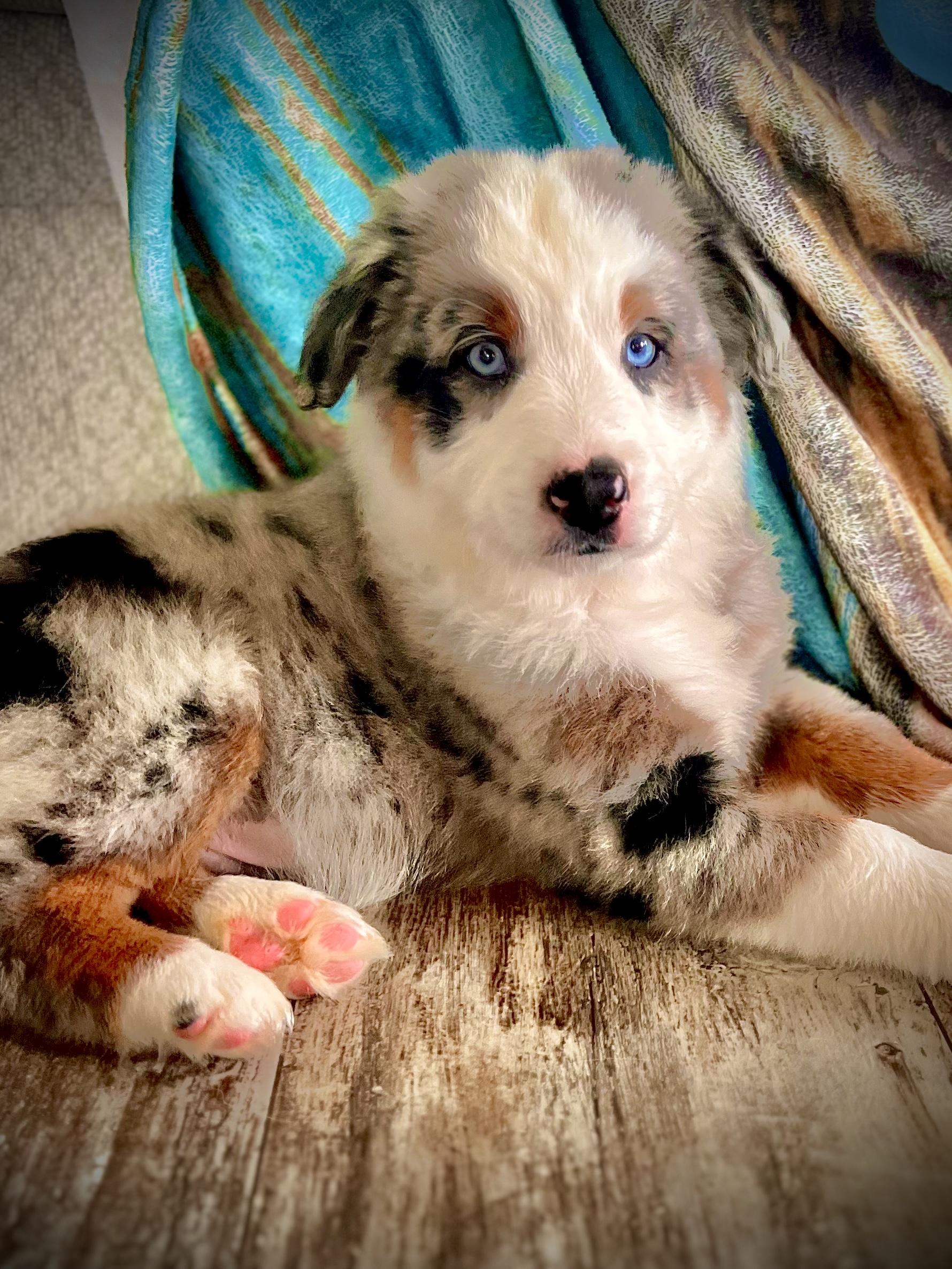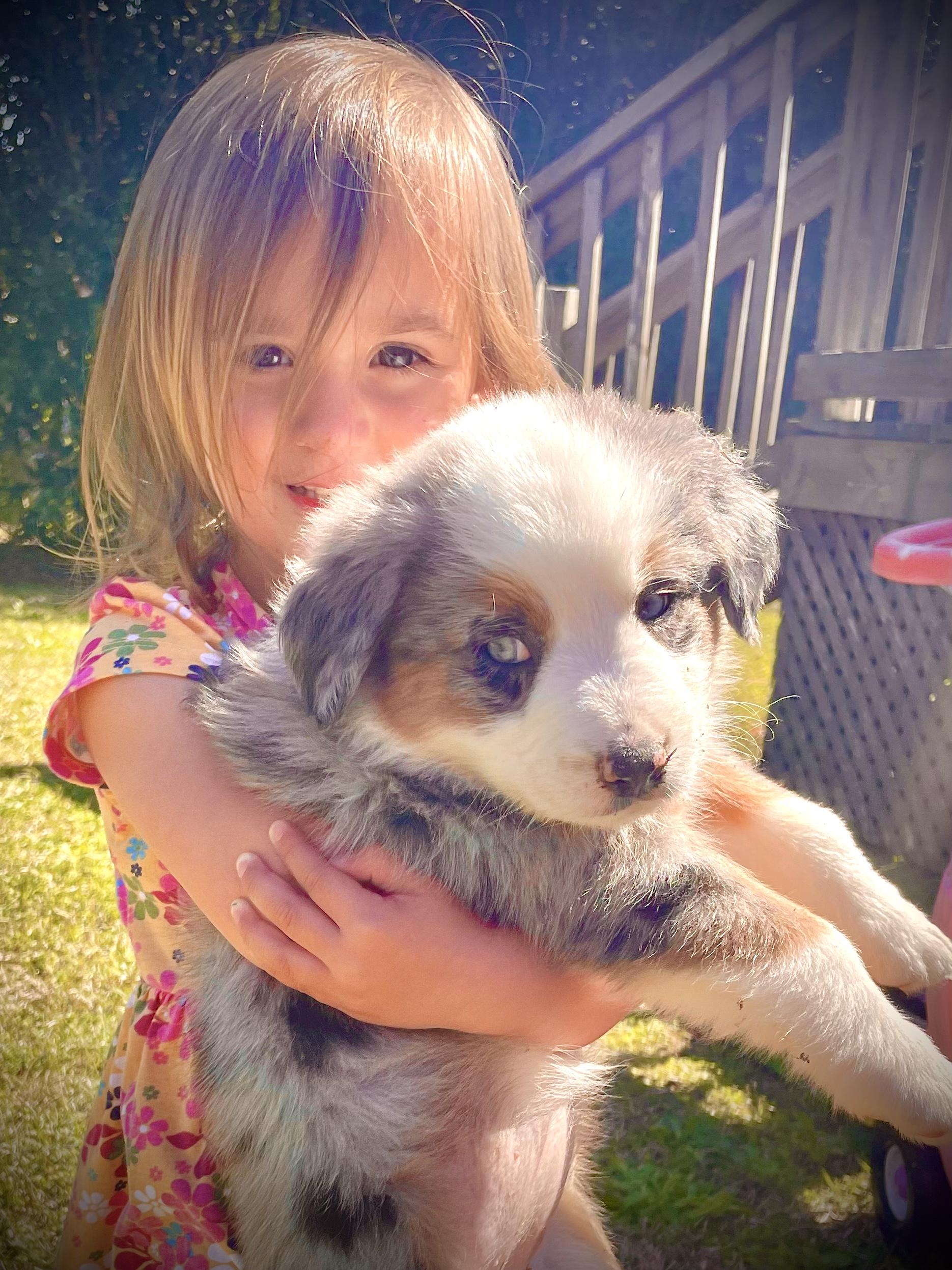 Our puppies include black, red merle, blue merle, and red. Colors will vary depending on the parent dogs.