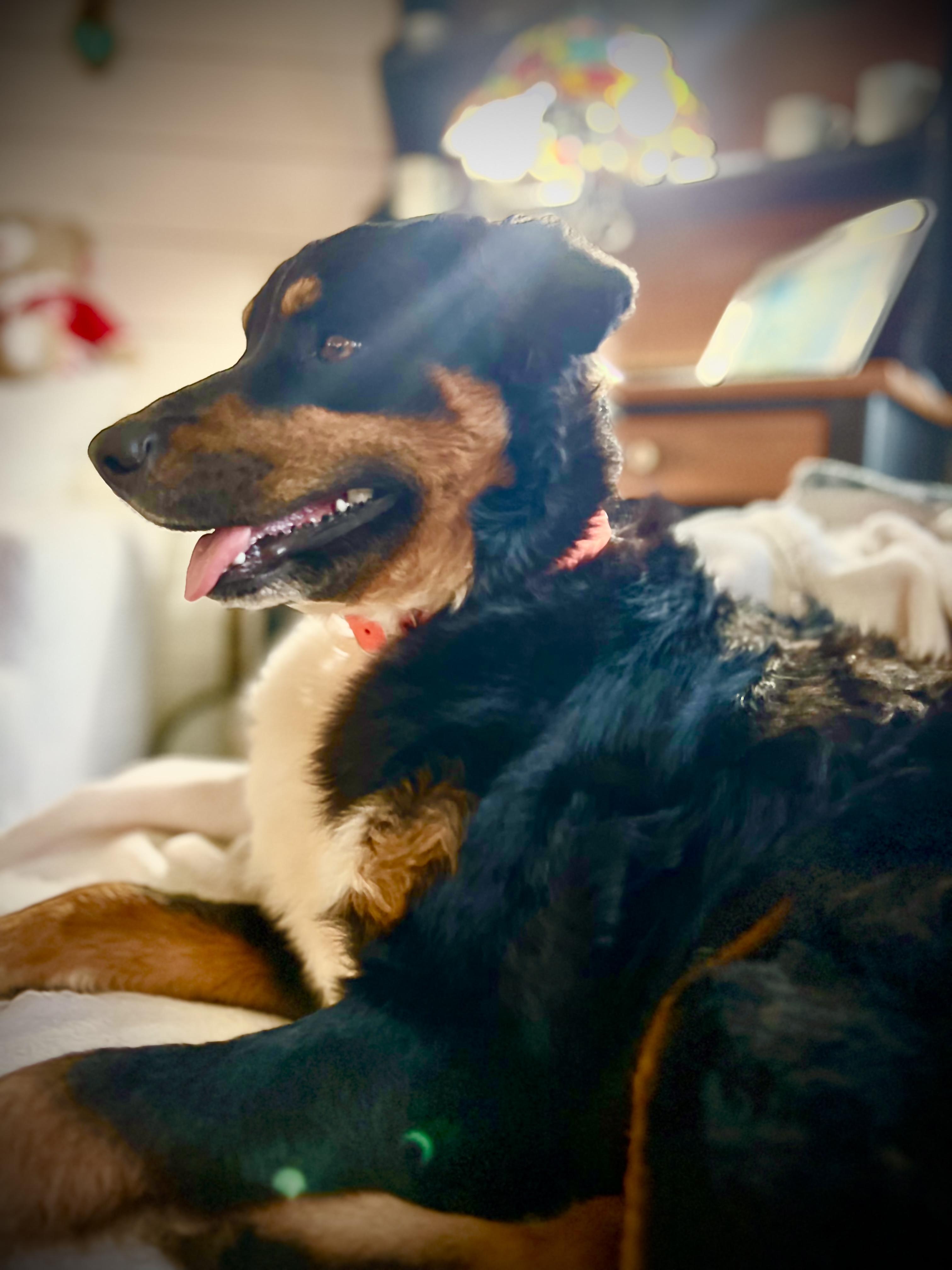 Mattie is a female Australian Shepherd. Carefully selected as a great representative of her breed, Christy decided to make her part of their program. Christy has passed Good Dog’s screening process, which involved a review of their breeding practices, environment, and the mental and physical health of their dogs.