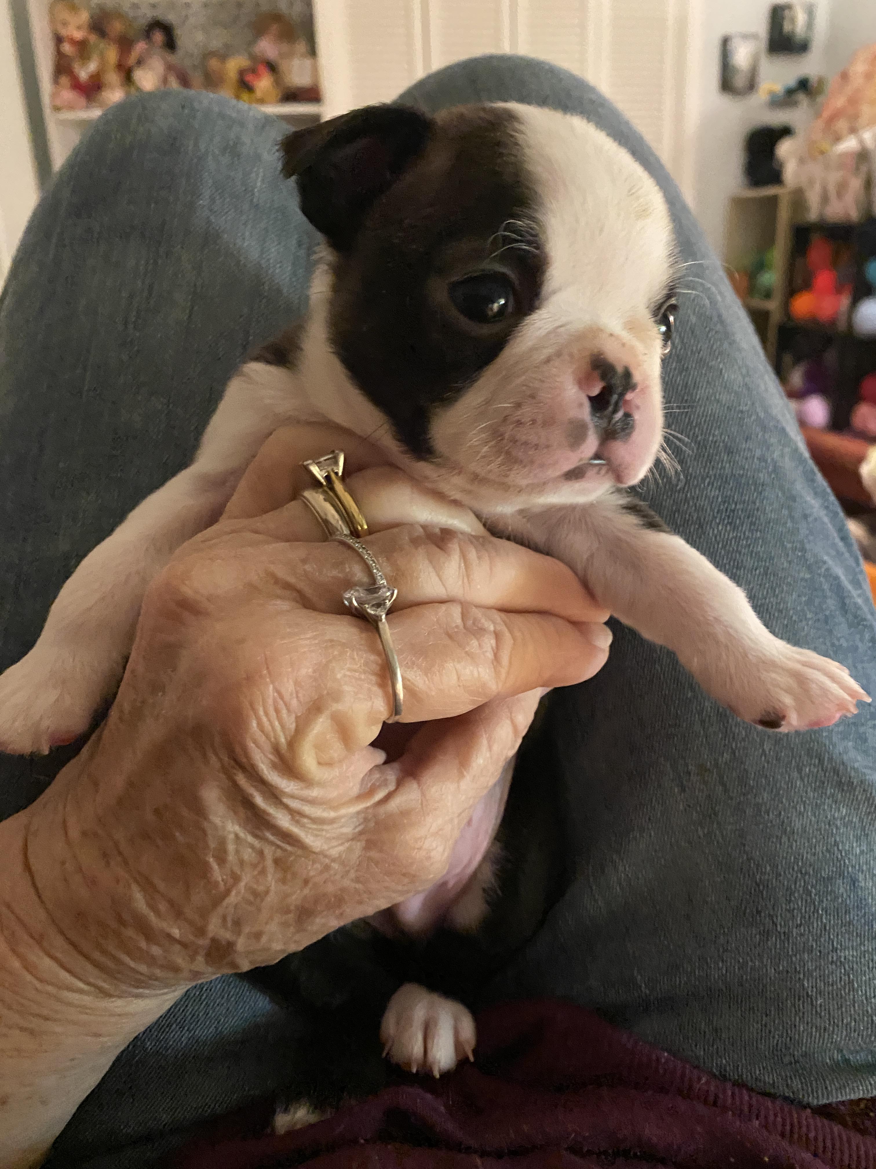 Gracie is a female Boston Terrier. Carefully selected as a great representative of her breed, Susan and Richard decided to make her part of their program. Susan and Richard has passed Good Dog’s screening process, which involved a review of their breeding practices, environment, and the mental and physical health of their dogs.