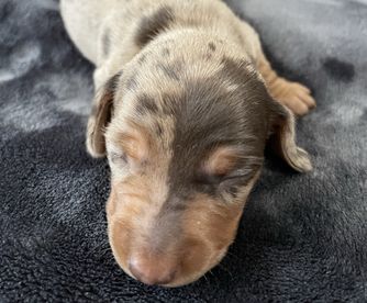 is a male Dachshund almost 3 years old. Carefully selected as a great representative of his breed, Jordan & Jessica decided to make him part of their program. Jordan & Jessica has passed Good Dog’s screening process, which involved a review of their breeding practices, environment, and the mental and physical health of their dogs.