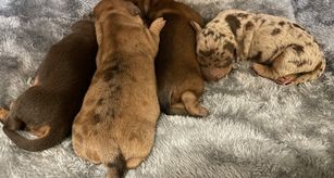 Our puppies include red, chocolate and tan, and dapple. Colors will vary depending on the parent dogs.