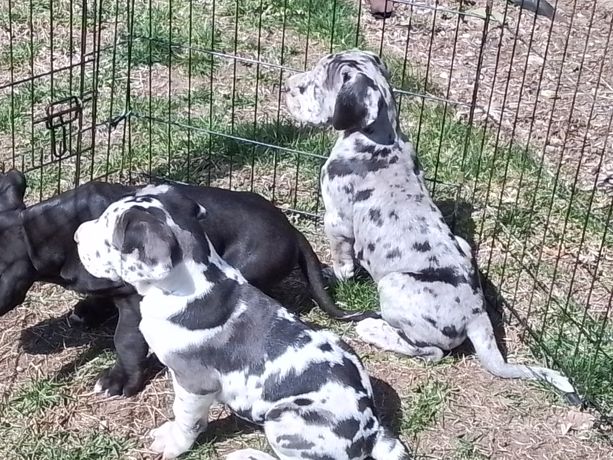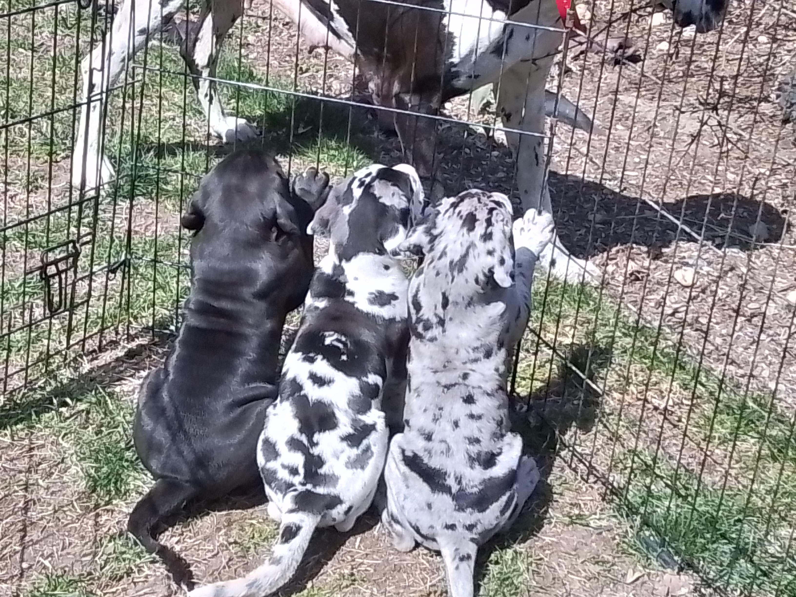 Our puppies include black and white, harlequin, and merle. Colors will vary depending on the parent dogs.