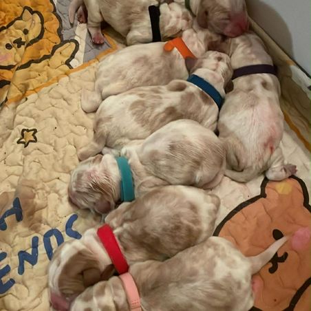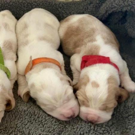 Our puppies include lemon and white and red and white. Colors will vary depending on the parent dogs.