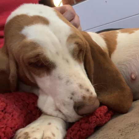 June is a female Basset Hound over 1 year old. Carefully selected as a great representative of her breed, Amber decided to make her part of their program. Amber has passed Good Dog’s screening process, which involved a review of their breeding practices, environment, and the mental and physical health of their dogs.