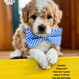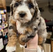 Our Bernedoodle puppies include brown, red, tri-color, phantom, and merle. Cavapoo puppies include merle, tri-color, and red. Colors will vary depending on the parent dogs.