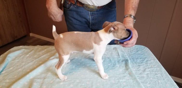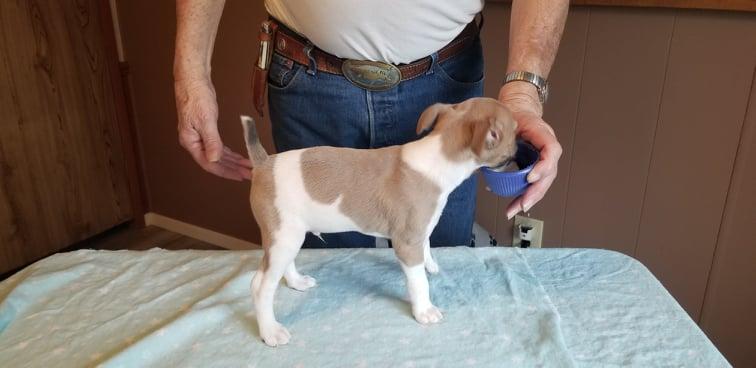 Reba is a female Rat Terrier. Carefully selected as a great representative of her breed, Kim decided to make her part of their program. Kim has passed Good Dog’s screening process, which involved a review of their breeding practices, environment, and the mental and physical health of their dogs.