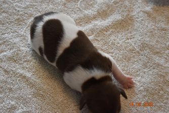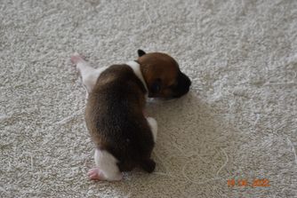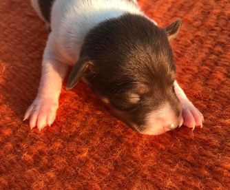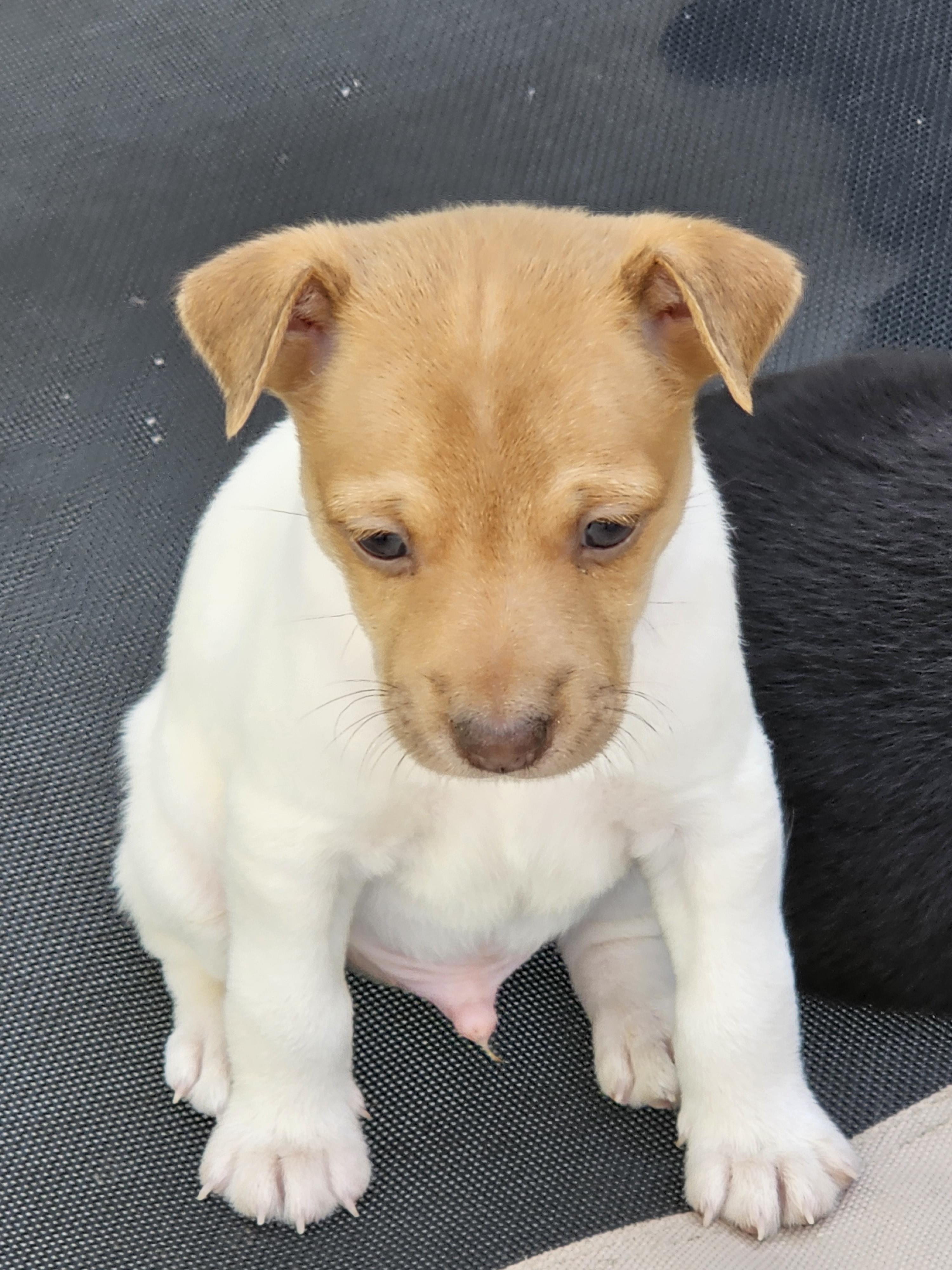 Our Rat Terrier puppies include white and chocolate, white and blue fawn, black tan and white, and red white and sable. Australian Kelpie puppies are black. Colors will vary depending on the parent dogs.