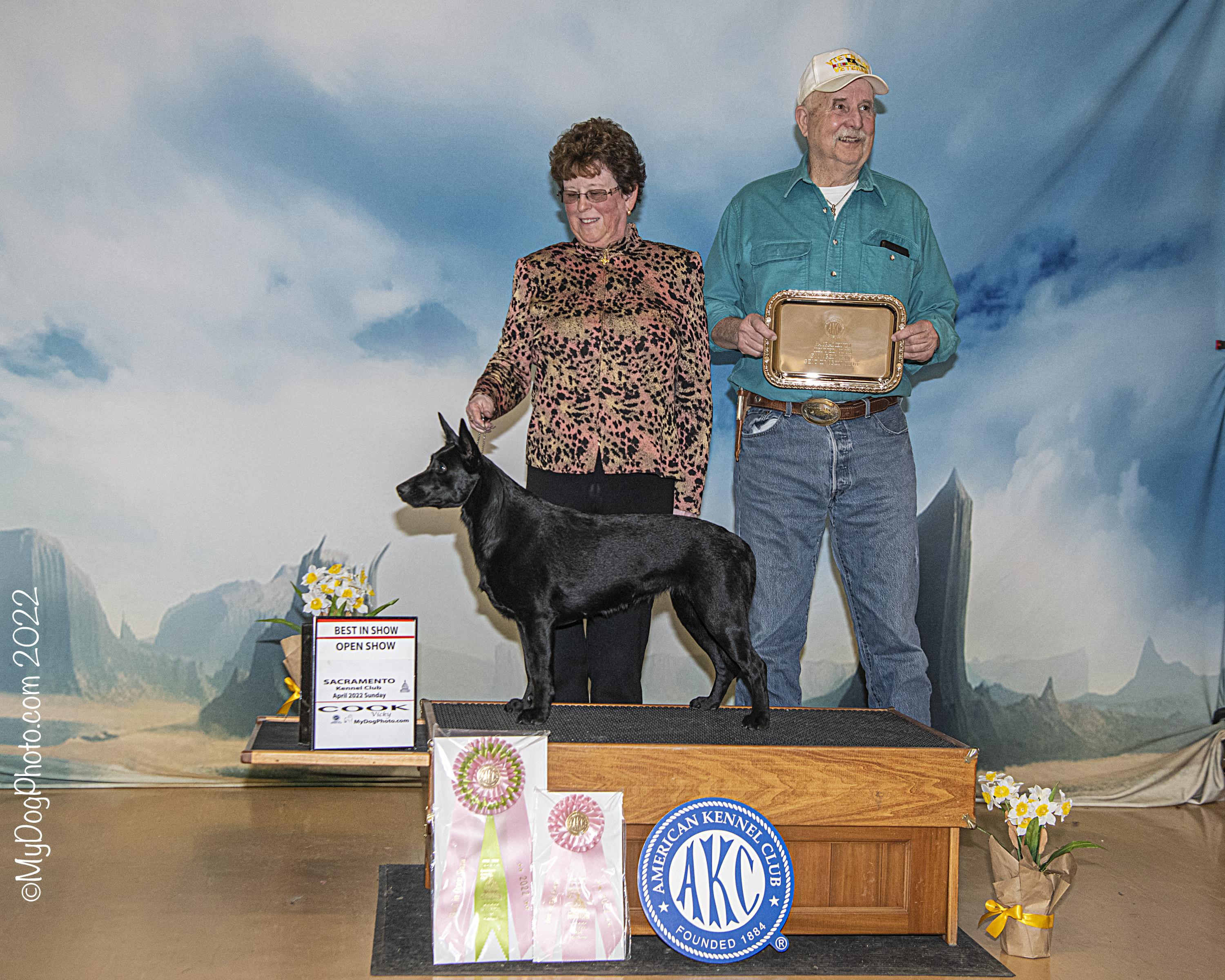 He is AKC FSS registered. He has multiple Best In Open Show wins, and multiple group placings in a very short show career. He has AKC, AHBA, and ASCA herding titles, which he achieved in 7 mos in 5he paddock. Many High in Trial awards also.