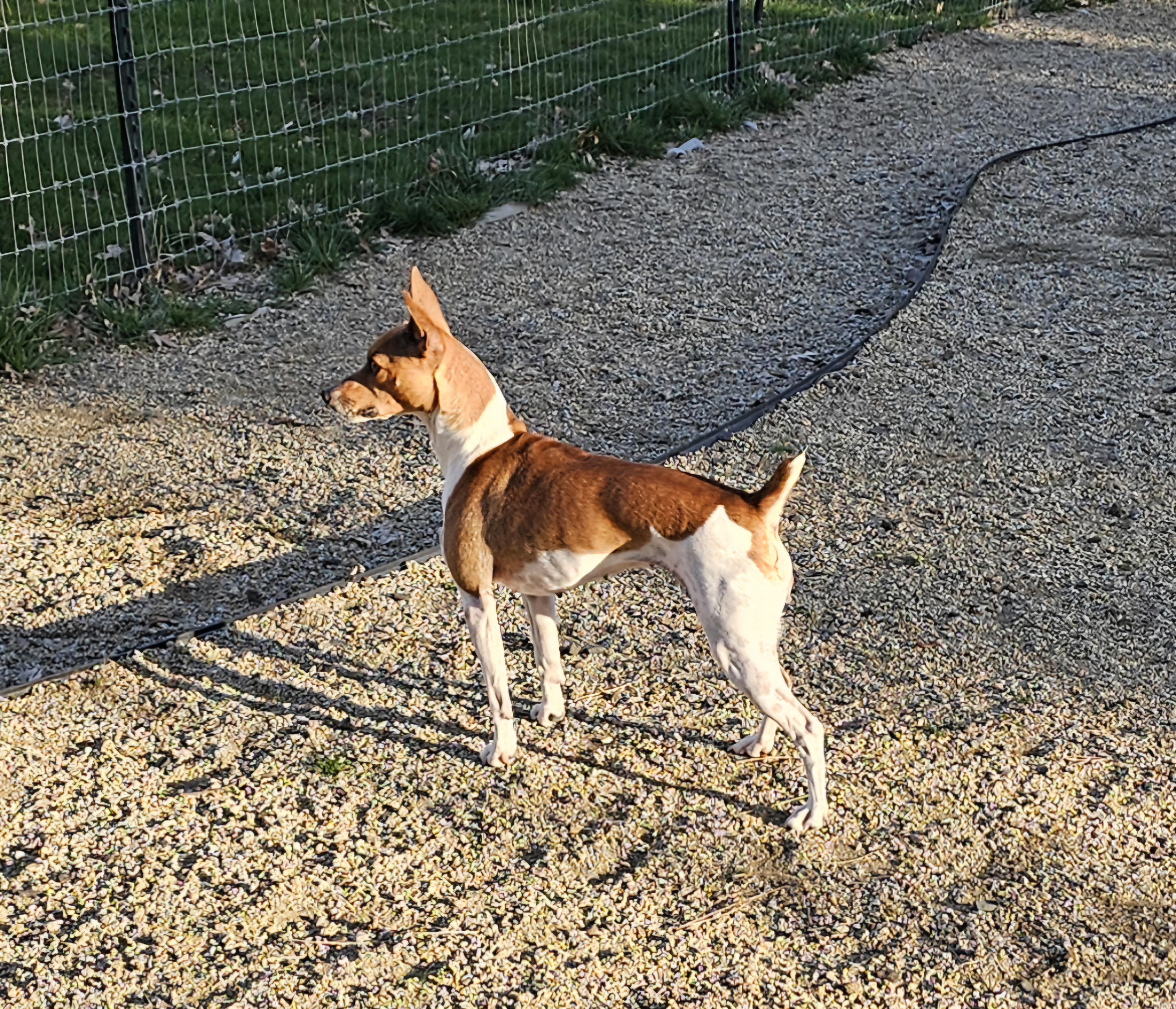 Obie is a female Rat Terrier. Carefully selected as a great representative of her breed, Kim decided to make her part of their program. Kim has passed Good Dog’s screening process, which involved a review of their breeding practices, environment, and the mental and physical health of their dogs.