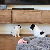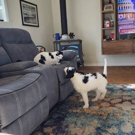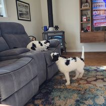 After having Rex for 6 months we felt he needed his own dog. Haha I mean he needed a friend. I wanted a girl because, I only have boys in this house! I knew I wanted an F1 so that if we wanted to breed they would be more compatible. We had them both health tested, and I began down my favorite part genetic pairing. Putting together their DNA to see what color/coat we would get.