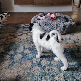 “First round of vaccinations, dewormed, vet checked, puppy pack, Fi nano microchip and trupanion insurance. Non-refundable Deposit is to take care of your puppy in our care. Puppy should be picked up with in 7 days of being 8 weeks old.”