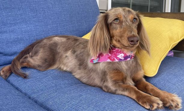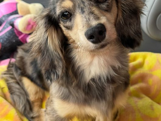 Sky is a female Dachshund. Carefully selected as a great representative of her breed, Tiffani decided to make her part of their program. Tiffani has passed Good Dog’s screening process, which involved a review of their breeding practices, environment, and the mental and physical health of their dogs.