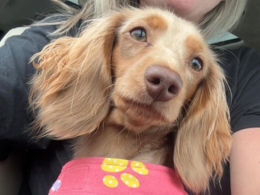 Sweetie is a female Dachshund. Carefully selected as a great representative of her breed, Tiffani decided to make her part of their program. Tiffani has passed Good Dog’s screening process, which involved a review of their breeding practices, environment, and the mental and physical health of their dogs.