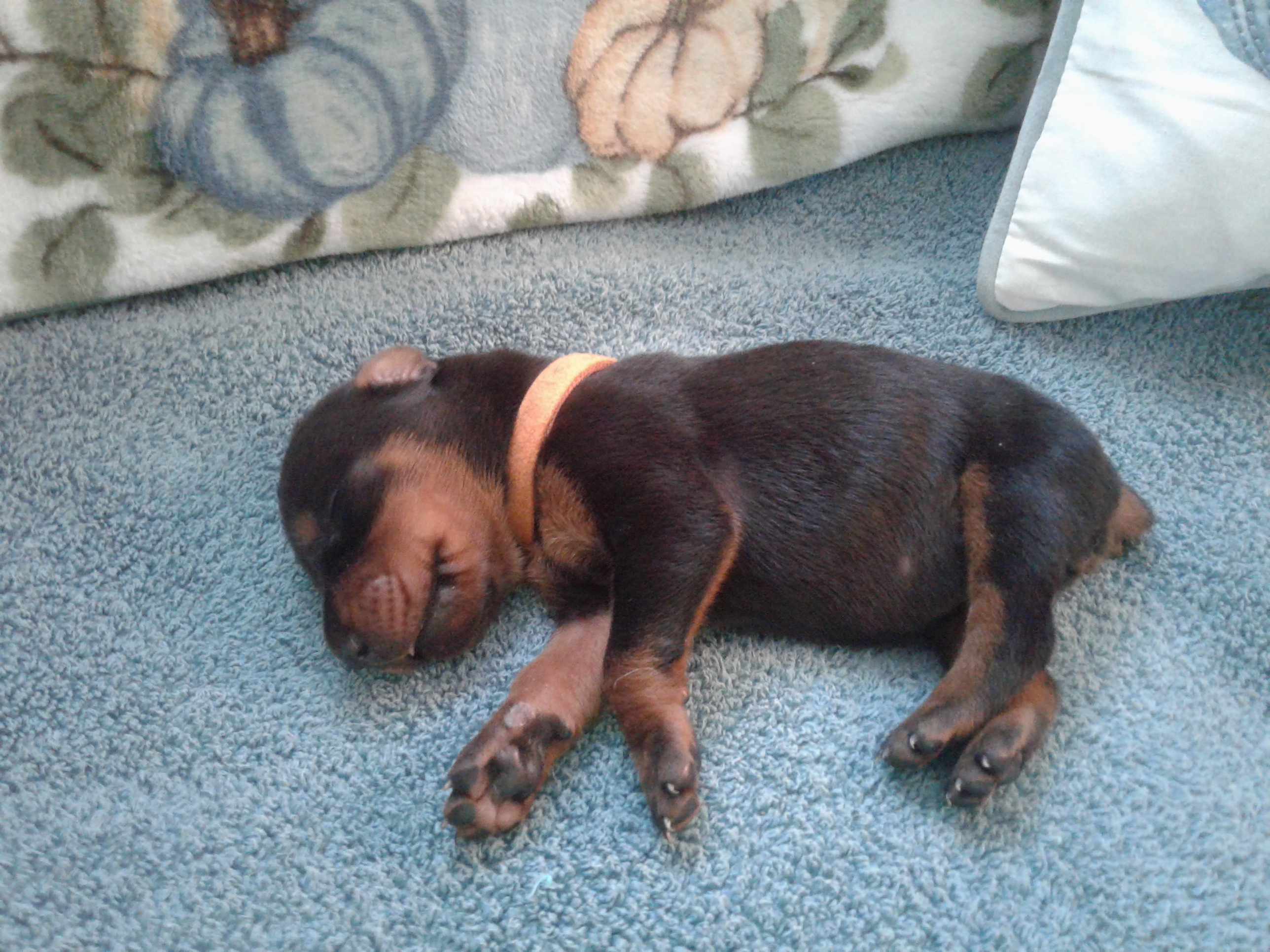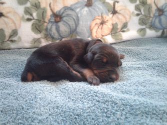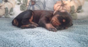 Our puppies are black and rust. Colors will vary depending on the parent dogs.