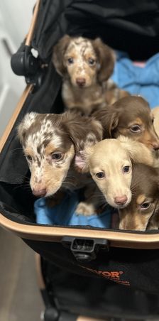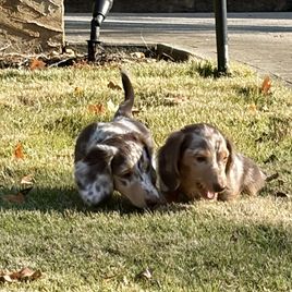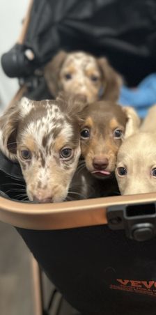 Bringing home our two dachshund puppies, Daisy and Dexter, was such a special experience thanks to Margie. From our very first communication, we could tell how much love and care she puts into raising her puppies. She was always available to answer every question and made the entire process feel so personal. When we arrived to pick them up, Margie took her time walking us through everything and made sure we felt completely at ease. Daisy and Dexter were happy, healthy, and so well-socialized — a true reflection of the attention and affection they received from her. She even sent them home with the sweetest parting gifts, which touched our hearts. We’re beyond grateful to Margie for helping us welcome these two little joys into our family. We can’t recommend her highly enough! — Michelle & Eric
