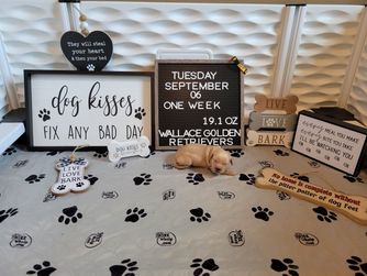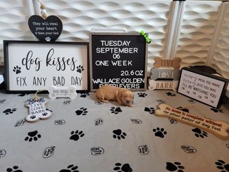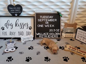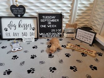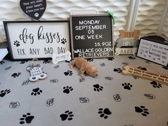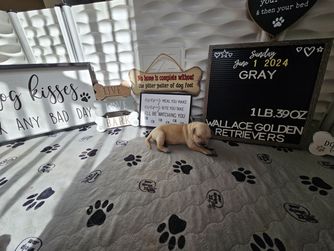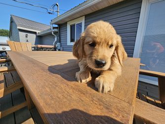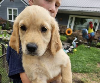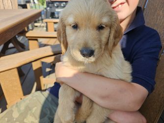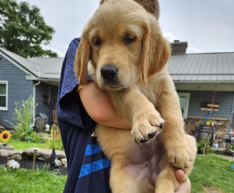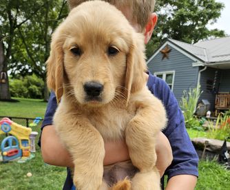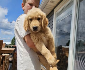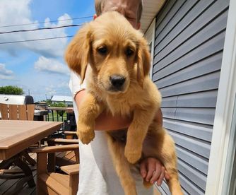 We are very hands on with our puppies. All Puppies are Potty trained, Socialized with children and other goldens before they leave our home. Well loved. Highly Recommended.