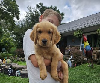 I'm Brandon & Tamra W., the breeder behind Wallace Golden Retriever's located in Montoursville, PA. Our puppies become integral members of our family. They’re a daily part of everything we do until they’re ready to join their forever families.